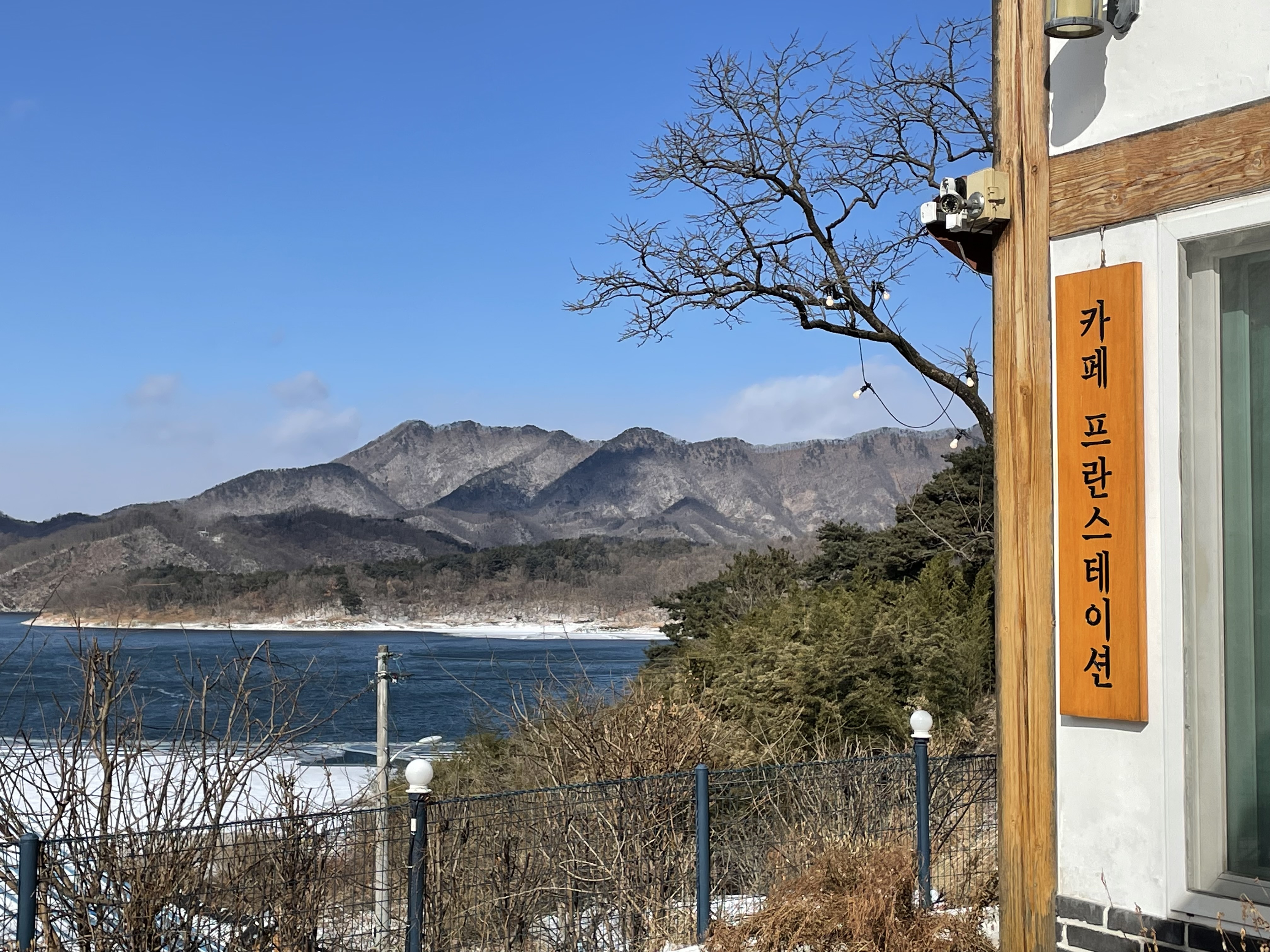 소정리가 예쁘다길래 미루다 드디어 왔다. 카페 프란스테이션으로 향했다. 오픈 전이라며 안내해주신 2층의 창 너머로 눈보라와 함께 대청호의 전경이 펼쳐졌다. 동탄에서 왔다니 어떻게 알고 왔냐며 물으셨다. 정지용을 좋아해 오던 게 이렇게 굳어졌다 말하니 시집 세 권을 들려 주셨다.